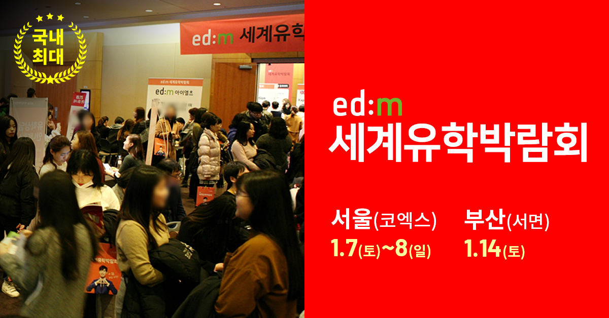 국내 최대규모! 역대급 혜택! edm세계유학박람회 개최